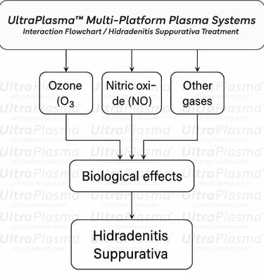Recent advances in plasma medicine have introduced UltraPlasma™ multi-platform plasma systems as a novel, minimally invasive therapeutic modality. Utilizing arc, argon, and helium plasma emissions, UltraPlasma™ targets pathological features of HS at distinct skin depths—epidermis, dermis, and hypodermis—via localized thermal, chemical, and electrical bio-interactions. These effects are mediated by reactive gases such as ozone (O₃), nitric oxide (NO), and other reactive oxygen and nitrogen species (RONS), leading to microbial sterilization, immune modulation, angiogenesis, and extracellular matrix remodeling.
