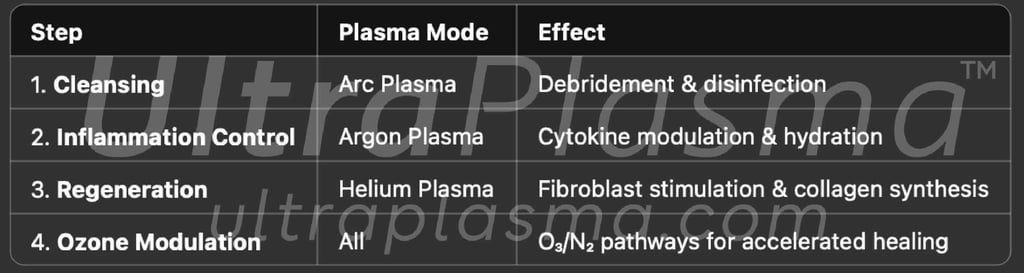 UltraPlasma™ argon plasma mode: Mid-penetration, anti-inflammatory, oxygenation-promoting.